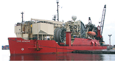 Escale à Papeete d'un navire poseur de pipelines sous-marins, le "CSO Apache". (Ph. TPM).