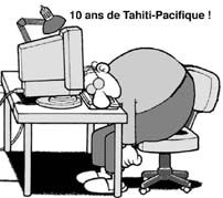 Dès 1995, l'arrivée d'Internet et son expansion améliorait grandement la confection du magazine car cette "toile" nous permettait de chercher et vérifier rapidement les informations. Nous sommes certainement une des entreprises qui a le plus profité de ce nouvel outil. Tahiti-Pacifique est d'ailleurs le premier journal du Pacifique-Sud -avant même nos confrères anglophones ! -à avoir ouvert un site Internet dès 1995. Soudainement, grâce à cet outil d'accès (et d'achat), nous nous trouvions -presque -à égalité avec nos confrères des grandes villes.