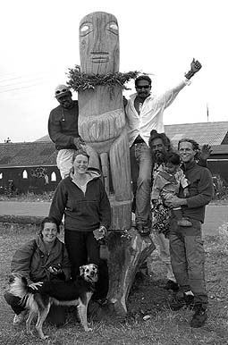 PEVA de Vairao et Hotu de Afaahiti ont taillé un tiki dans un tronc de chêne de 600 ans offert par la cité de Christiania (Oslo) à Helgoland où s´est déroulé un festival culturel réunissant les pays du monde entier et auquel participait Tahiti. Il scelle l´aventure de la pirogue Aramoana dont Rasmus (à droite) fut le capitaine qui avait 19 ans à l´époque de la traversée du Pacifique.