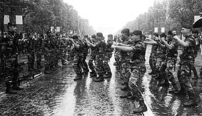 Des soldats du SMA (Service militaire adapté) de la Polynésie française et de la Nouvelle-Calédonie ont défilé sur les champs Elysées le 14 juillet. Bien qu'ils aient interprété un Hakka pourtant tout-à-fait polynésien, les commentateurs des télévisions parisiennes les présentèrent comme des troupes « venues de l'Océan Indien ». Hélas, la pluie rendit ce mémorable défilé plutôt morose.