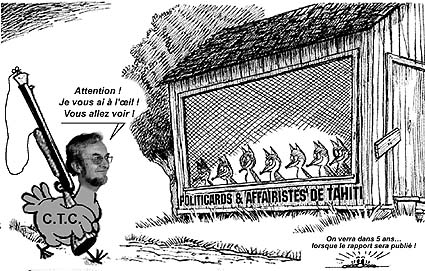 Il faut comprendre que la note S&P avec laquelle se gargarise notre gouvernement n'est nullement l'évaluation d'une performance économique mais juste celle du potentiel du Territoire à rembourser ses dettes, environ 60 milliards Fcfp. Et comment a-t-on maintenu le pouvoir de rembourser la dette ? D'abord en augmentant les impôts, essentiellement par le biais de la TVA et la très hypocrite « taxe de développement », puisque les recettes fiscales sont passées de 59 à 84 milliards de 1997 à 2001, ce que le ministre de l'économie appelle joyeusement « la maturité fiscale ». Ensuite, S&P a maintenu sa bonne note (généralement réservée aux pays industrialisés), parce que l'Etat français s'est engagé (pour l'instant verbalement) à prolonger le versement du Fonds de reconversion de l'économie (18 milliards Fcfp par an) qui s'ajoutent aux 110 milliards usuels de transferts de fonds publics. Tahiti a donc une bonne note d'emprunteur grâce à un « tonton gâteau » riche et généreux, lequel en 2001 lui a « transféré » 127 milliards Fcfp (¤1,06 milliard).