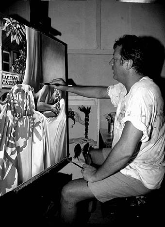 Comme toujours, ce sont de superbes vahine drapées dans de magnifiques« tifaifai » qui sont le sujet des 37 toiles que le célèbre peintre Christian DELOFFRE a exposées début novembre. (Ph. AdP, TPM).