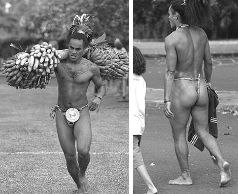 Firmin Flores a remporté la course de porteurs de fruits lors de la journée de sélection pour le Heiva Tu'aro Ma'ohi, épreuves sportives traditionnelles. Le titre du meilleur et plus authentique costume traditionnel aurait également pu lui être attribué. (ph. Tahiti-Pacifique)