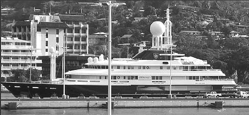 Le yacht Baodicea, long de 72 mètres et propriété d'un magnat australien de la télévision qui vit aux Bermudes, a fait escale dans nos îles. (ph. TPM)