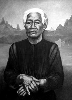 Le couple Farina, tous deux artistes-peintres bien connus pour avoir effectué un séjour de plusieurs années à Hiva Oa où ils ont peint de nombreuses copies des œuvres de Gauguin pour le musée d'Atuona, a exposé à la mairie de Papeete. On remarque ce tableau de l'ancienne reine marquisienne Vaitehu peinte en Joconde. (Ph. TPM)