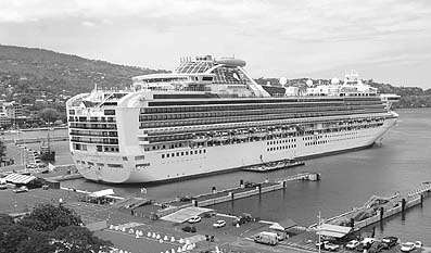 Le "Sapphire Princess", long de 290 m et l'un des plus grands paquebots au monde, a fait escale à Tahiti avec 3000 passagers et 1200 membres d'équipage. (ph. TPM).