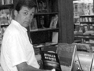 Bernard Dumortier, journaliste de Tahiti dans les années 80, est revenu signer son livre sur Moruroa. Il fut le seul journaliste autorisé à accompagner la délégation métropolitaine conduite par Marcel Jurien de la Gravière, délégué à la sûreté nucléaire et à la radioprotection pour les activités et installations intéressant la défense. Le médias de Tahiti n'avaient même pas été avisés de cette visite sur les sites. Bravo la transparence ! (ph. TPM)