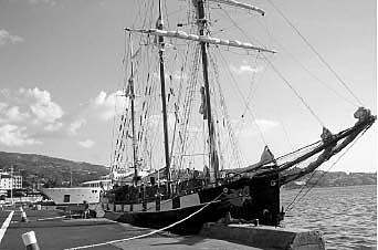 Le trois-mâts La Boudeuse, navire d'exploration humaniste" de Patrice Franceschi, a effectué une longue escale à Tahiti avant de partir se montrer (avec beaucoup de publicité) aux Tuamotu et îles Marquises. C'est comme Jean-Loup Etienne et autre Maud Fontenoy : les Parisiens s'amusent "scientifiquement" dans le Pacifique. (ph. TPM)