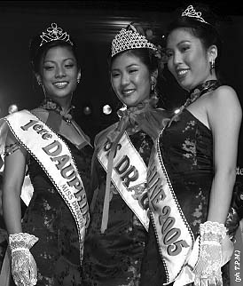 C'est Yvette Cheong (au centre) qui a été élue Miss Dragon 2005. Ses dauphines sont Loanah Chong (à gauche) et Leilani Chand (à droite).