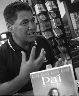 L'acteur maori Rawiri Paratene, qui joua notamment dans le film néo-Zélandais "Pai" était à Tahiti pour quelques jours de vacance et en profita pour donner une séance de dédicaces.