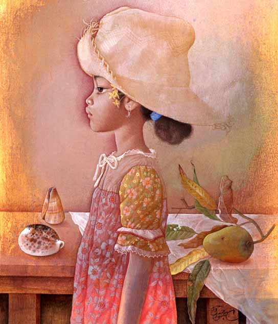 "Fille à la mangue", tempera de Jean-Charles Bouloc