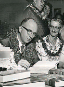 Le 7 février célébrait le centenaire de la naissance de James A. Michener, écrivain américain décédé en 1997. Il est l'auteur, entre autres, des livres « South Pacific », « Return to Paradise », « Rascals in Paradise » et « Hawaii », uvres traduites dans plus de 50 langues et vendues à plus de 70 millions d'exemplaires. C'est la personne qui a le plus fait après guerre pour que les îles du Pacifique Sud et Tahiti entrent dans le collectif mental des populations des pays anglophones. (Ph. arch TPM)