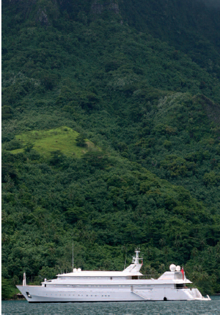 Le Yaakun (ex Al Menwa), yacht de luxe de 65 m, fait une escale de deux mois en Polynésie française. Propriété d'un milliardaire espagnol, il transporte ses enfants mineurs et leurs enseignants pour un tour du monde éducatif qui va durer plus de deux ans. (ph. TPM)