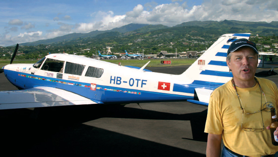 Le docteur suisso-polonais Wojciech Mirski, membre du club suisse des "Flying doctors", est arrivé de l'île de Pâques (via les Gambier) avec son petit avion monomoteur immatriculé HB-OTF pour effectuer un tour du monde, une première. Après son escale de Tahiti, il est reparti vers les îles Cook, à 1158 Km de Tahiti. (ph. TPM)
