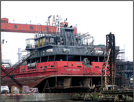 Le Tahiti-Nui VIII, navire de débarquement et de transport d'engins lourds, long de 73 mètres a été réceptionné par les autorités territoriales du chantier naval de Fujian, à Fuzhou en Chine. Il devrait arriver à Tahiti au mois d'octobre. Ce sera le plus grand bateau de la flottille administrative. (Ph. DR)