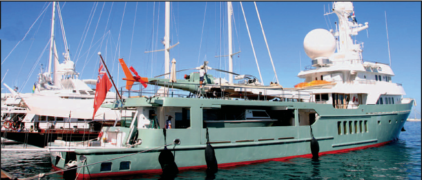 Un nouveau genre de yacht fréquente nos eaux, il s'agit de "yachts d'expéditions" tel celui-ci, le Karima (ex Maupiti). Bien que long seulement de 50 mètres, il a tous les outils du "gentleman-explorateur" : hélico, vedette rapide, etc. (Ph. TPM)