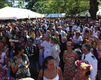 Foule usuelle pour goûter les petits fours à la garden party du 14 juillet au  haut-commissariat. (ph. TPM)