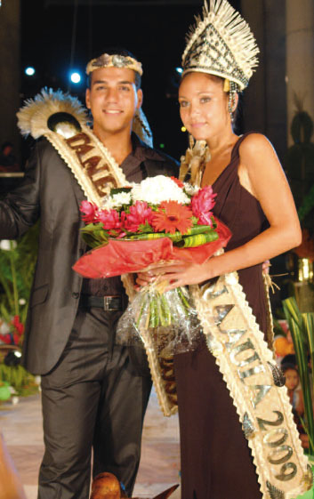 C’est la saison des “miss” qui commence à Tahiti. Ci-dessus Miss et “Tane” Punaauia,