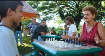 Madame le maire de Pirae a fait installer des tables d’échecs dans le magnifique jardin de la mairie de Pirae. (Phs TPM)