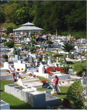 rafraîchissant les tombes avec fleurs et sable blanc. (Ph. TPM)