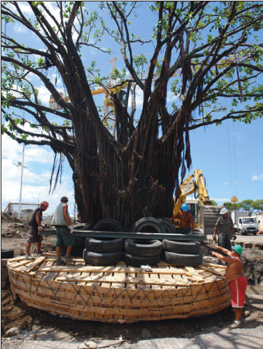 Transfert à grands frais dâun immense banian pour faire place à la nouvelle gare maritime à Papeete. (Ph. TPM)