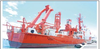 Escale à Tahiti du navire de recherches allemand “Sonne” qui effectue des forages dans les plaines abyssales du Pacifique au sud de Tahiti. (Ph.TPM)
