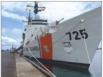 Escale de cinq jours d’un patrouilleur des gardes-côtes américains à Papeete, ville qui devient populaire avec la US Navy car considérée sans danger pour ses bâtiments, loin des terroristes et où les Américains sont populaires.  (Ph.TPM)