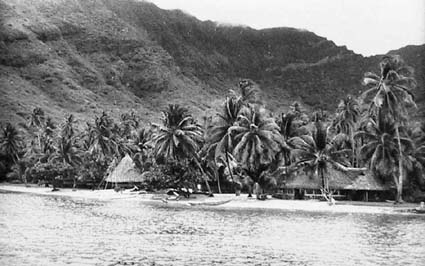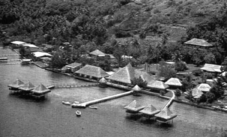 Le premier hôtel Bali Hai à Moorea lors de son ouverture en 1961 : vendre la joie de vivre tahitienne aux touristes en profitant de l'arrivée de l'ouverture de l'aéroport. |