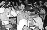 ![]() Les frères Hervé et Thierry BRIDE de Tahiti ont remporté le titre de champions du monde de Hobie Cat 16 lors du Mondial 2000 à la Guadeloupe. |