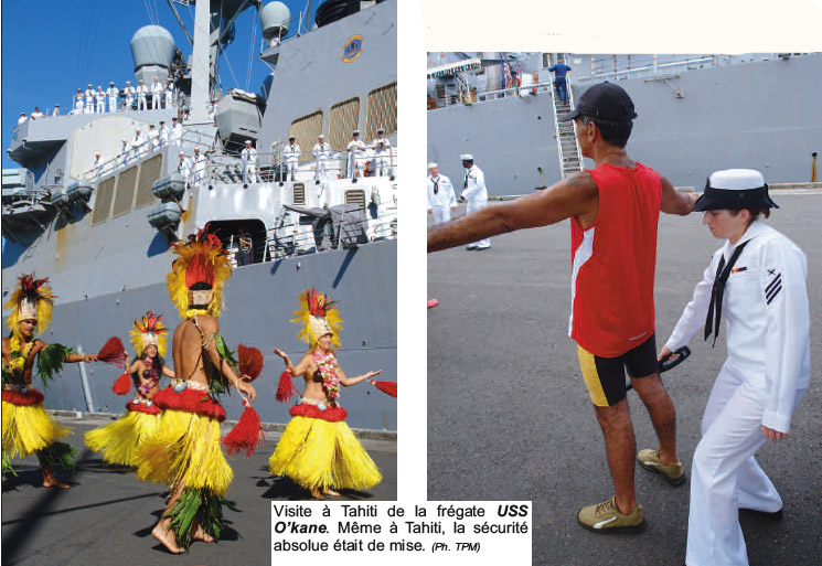 Visite à Tahiti de la frégate USS O’Kane. Même à Tahiti, la sécurité absolue était de mise. (Ph. TPM)