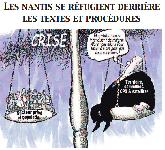 Il y a un effet positif à attendre de la crise actuelle : les gens se rendront compte qu’ils vivent au-dessus de leurs moyens, qu’ils payent leurs dépenses de fonctionnement avec de l’argent qu’ils n’ont pas, en empruntant à d’autres ! Et qui finance tout cela ? Le contribuable de métropole, mais aussi de Tahiti. L’explosion des nouvelles taxes et charges n’en est que le premier aperçu.