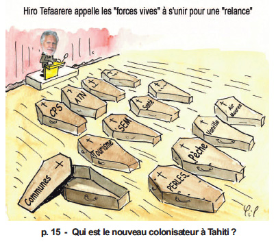 Pour prouver à quel point « l’élite » de la Polynésie française est désormais à côté de la plaque, il suffit de lire la lettre que Hiro Tefaarere, le vice-président de l’assemblée de P.F. a expédiée fin juillet au président Temaru, ainsi qu’au président de la République. Il y écrit : «  Nous composerons une équipe de 12 personnes représentant les forces vives du Pays (Gouvernement, administration du pays, administration des communes, CESC, représentant des salariés, des employeurs, des consommateurs, des étudiants polynésiens, des élus de l’assemblée de Polynésie française...) ». Ainsi, sont listées essentiellement les administrations et officines publiques, déclarées être des « forces vives ». Hélas pour