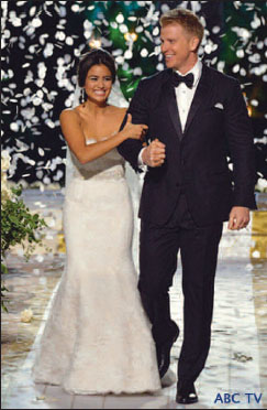 La célèbre émission Bachelor  [“célibataire”] de la chaîne américain ABC, qui dure depuis 17 ans, a cette année pour la première fois célébré un mariage à l’antenne. Puis a offert aux nouveaux mariés une lune de miel dans un grand hôtel de Bora Bora.  Ph. ABC TV.