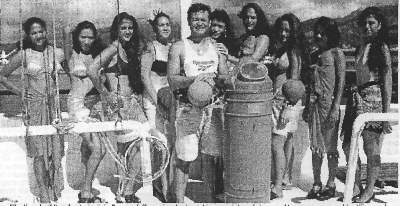 ![]() Election de "Miss Australes" , le 9 mars à Papeete, dont voici les candidates ci-dessus. Nous ne pouvons indentifier sur la photo Mlle Heiariki Boulley, la gagnante, car elle était maquillée à outrance le soir de l'élection, donc méconnaissable. Le bel homme au centre, le minitre Patrick Howell, n'était pas candidat ... à cette élection. (Ph. DR) |