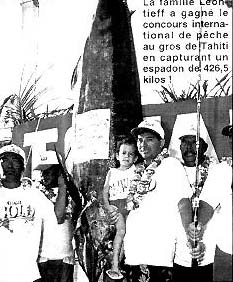 ![]() La famille Léontieff a gagné le concours international de pêche au gros de Tahiti en capturant un espadon de 426,5 kilos! |
