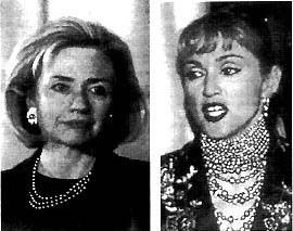 ![]() Madame Hillary Clinton, élégante et sobre, a porté un collier de perles de Tahiti lors de son voyage en Amérique de Sud. Par contre chez Madonna, certainement plus riche, c'est carrément l'overdose de perles de Tahiti. Quoi qu'on en pense , ce sont là de superbes publicités pour nos perles. (Ph: Tahiti Pearl News) |