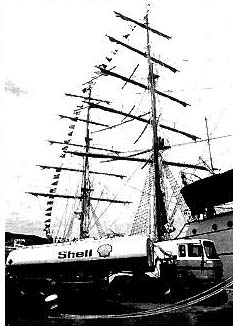 Le voilier école mexicain "Cuauhtemoc", de retour d'Australie, a fait une escale de trois jours afin de faire le plein, comme le montre la photo, avant de rentrer à Acapulco, son port d'attache au Mexique. |