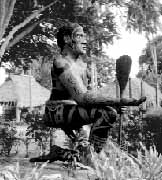 ![]() Depuis trois ans, à Moorea, au bord de la route de deinture, un fier et immense guerrier ma'ohi nous tends la main, dans le style "t'as pas cent balles ?" Est-il là pour représenter le symbole de la politique actuelle ? Se demande les touristes. Non , rassurez-vous, c'est l'enseigne d'un magazin de perles qui a fait faillite. Il tenait une grosse "perle", une boule lumineuse qui a disparue depuis longtemps. |