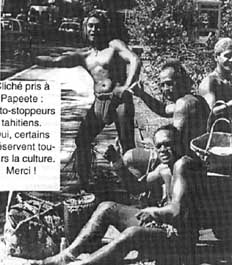 Cliché pris à Papeete: Auto-stoppeurs Tahitiens. Oui, certain préservent toujours leurs culture. Merci! |