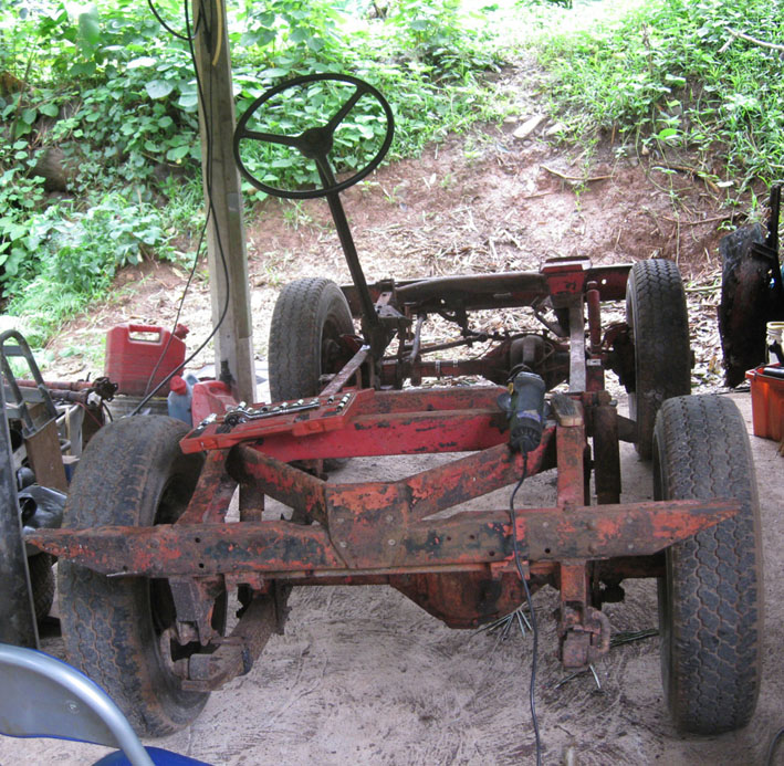 The "good" CJ-3B chassis, stipped of some of the rust, before dismanteling, even the springs.