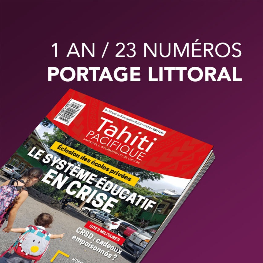 Votre magazine livré à votre domicile ou votre bureau dès sa sortie en kiosque (tarif valable si vous habitez proche du littoral). Possible uniquement pour la zone urbaine, plus d'informations par téléphone au 89 29 18 77 ou par email : mcuneo@fenuacom.pf
